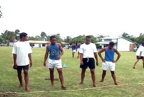 Some of the older Tongan students prepare to begin a race on Sports Day 2003
