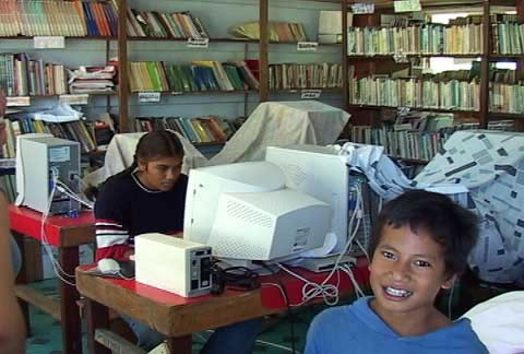 Not only does the computer lab have PCs and a scanner, but the extra outlets give Rebecca and Justin somewhere to recharge their video camera and I-pod.
