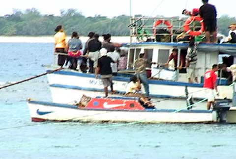 Tongans in smaller boats board the ferry to help unload packages...mainly Christmas presents for Nomuka residents.